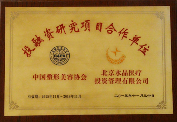 2015年12月10日上午,北京水晶医疗投资管理集团有限公司、中国整形美容协会 “投融资研究项目”合作签约仪式在北京举行。北京水晶医疗投资管理集团有限公司张明起总经理、李英肖总监、中国整形美容协会张斌会长、曲晓光主任、曹德全副秘书长以及行业内其他人士共同出席