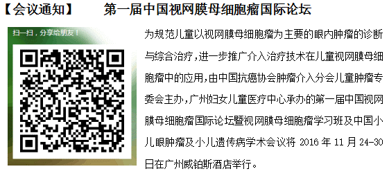 2016年11月24-30日,广州妇女儿童医疗中心承办的第一届中国视网膜母细胞瘤国际论坛会议将汇集国内外著名专家齐聚广州,科学普及视网膜母细胞瘤前沿临床诊疗技术。敬请社会各界给予广泛关注!也请业界同仁积极参与!