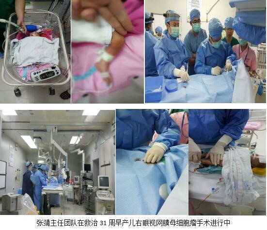 孩子是一个家庭的希望。每个父母都希望自己的孩子有一双明亮、水汪汪的大眼睛;都希望孩子身心健康地快乐地成长。张靖主任用精湛的医技和高尚的医德给无数个孩子带来了光明,给无数个家庭带来了希望!张靖主任团队在临床诊疗过程中救治最小的患者是一名女婴,她31周早产,纠正胎龄后38周,1.78公斤,在新生儿眼科筛查中发现右眼视网膜母细胞瘤,经过与眼科、新生儿科在内的多学科团队讨论后,决定进行经股动脉选择性眼动脉灌注化疗,马法兰0.8mg+卡铂20mg。在治疗后小孩生命体征平稳,1月后的眼底检查发现眼部肿瘤已经全部钙化,肿瘤细胞已经被完全杀死。经眼动脉化疗希望能还给可怜的小天使一个清清楚楚的世界。