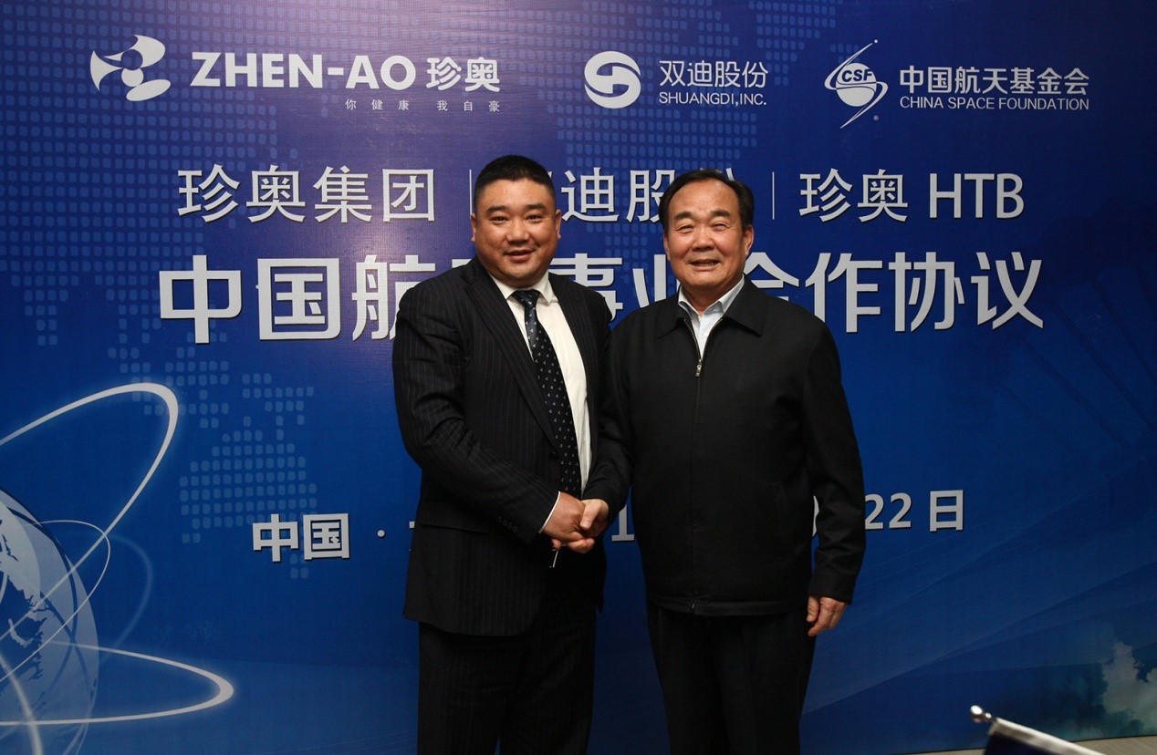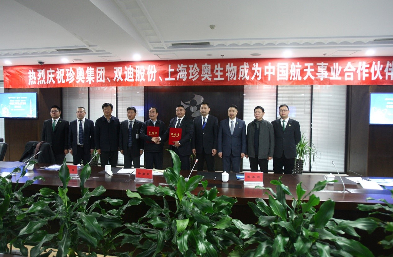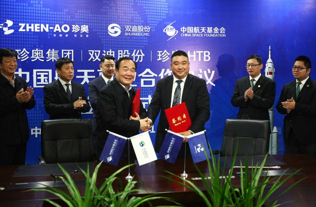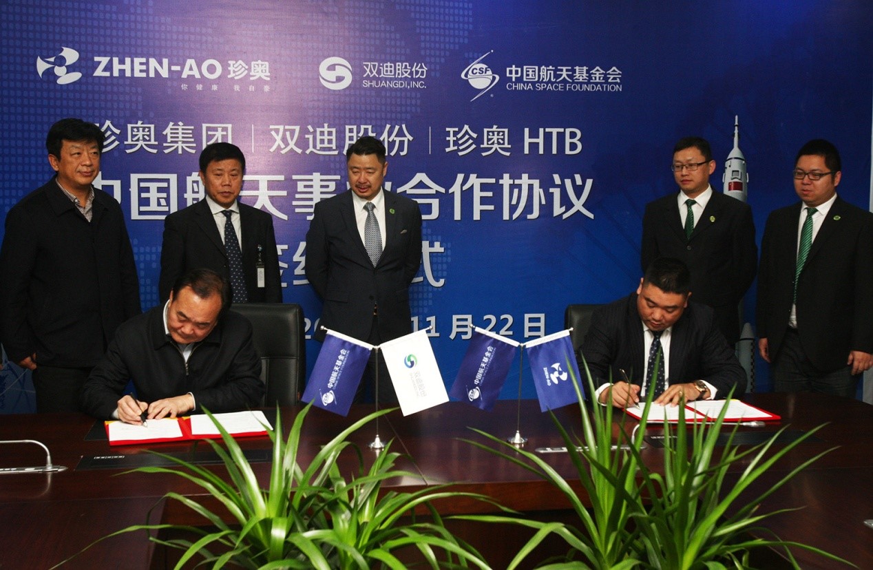 11月22日下午,珍奥集团、双迪股份、上海珍奥生物与中国航天基金会在大连珍奥生物谷隆重举行“中国航天事业合作伙伴”签约仪式。珍奥核酸类保健食品、双迪富氢系列器械产品、HTB托玛琳功能性纺织产品将为中国航天事业提供健康保障。珍奥双迪获得此次授权意义重大,标志着珍奥双迪产品的科技和质量获得高度认可。