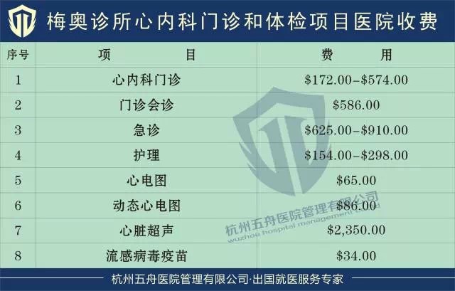 杭州五舟蒋医生翻译的梅奥诊所医疗费价格表一部分