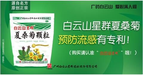 1、饮用白云山星群夏桑菊。据介绍,白云山星群夏桑菊独家获防治流感、禽流感专利(专利号:ZL200610005382.2)。其配方有效部位成分"氨基酸"、"熊果酸"、"齐墩果酸"、"生物黄酮"等具有杀灭甲型流感病毒H3N2亚型、高致病性禽流感病毒H5N1亚型和乙型流感病毒株的作用,可用于人的甲型流感、乙型流感和禽流感的防治,被誉为"中药达菲"。日常用以预防流感,再适合不过。