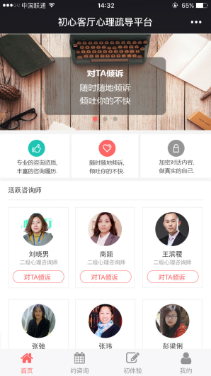1. 初心客厅心理疏导平台 (微信号: xinlishudaozixun)