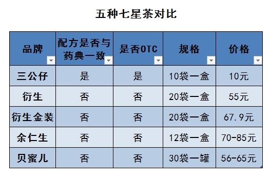 五种七星茶:配方不同 价格不同