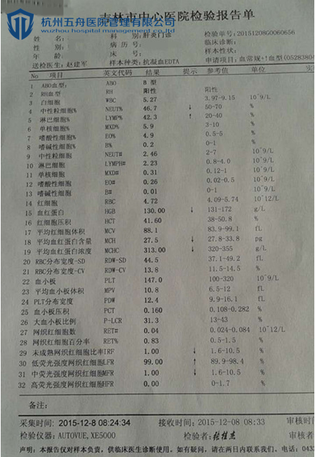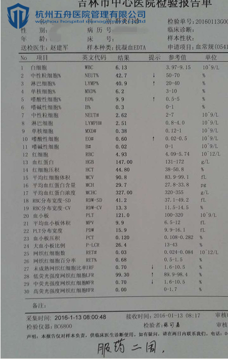 丁女士服药前血常规报告