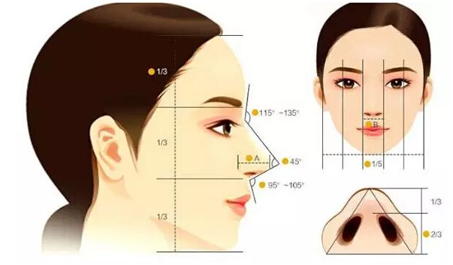 脸中鼻子所占比率是,把脸竖直分为5份,鼻子占其中完美鼻型。的1/5;水平分为3部分,鼻子占其中的1/3,(即中国人常说的三庭五眼)为最理想形态。