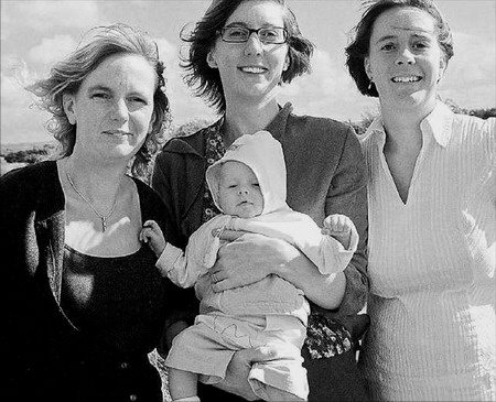 图为小查利和妈妈们在一起,海伦(左)、亚历克斯(中)、夏洛特(右)