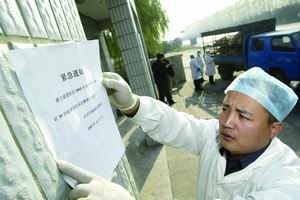 房山琉璃河检查站贴出紧急通知,严防拉有活禽的车辆入京。前天和昨天两天,全市27个进京指定道口和144个非指定进京路口共劝返20282只进京活禽。本报记者范继文 赵升 摄影报道