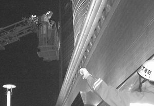 建外派出所的民警说,消防队动用云梯车需要得到上级许可,派出所也在不断催促此事,但进展不大。下午3点,记者从建国门消防中队获悉,该队没有云梯车可用,目前没有接到调用其他中队车辆的指示。附近的红庙消防中队配有云梯车,并未接到指挥中心派遣。119接警员称,火警抢险需要时才可派出云梯车,建议大厦物业部门解决此事。