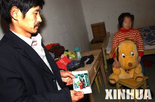 11月24日,安徽休宁县人禽流感患者许某某的丈夫拿着她生前的照片。新华社记者 李健 摄