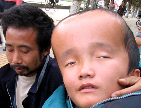 这对父子是湖南省怀化市中方县聂家村11组农民。据孩子的父亲聂太清介绍,他的孩子聂军从生下来开始,就患有先天性脑肌损。在当地医院治疗时,医生说孩子的病很难治愈,且医疗费用十分昂贵。由于他和妻子靠务农为生,一时之间拿不出足够的钱为孩子治疗,夫妻于是决定等孩子大一些、家里有了一定的积蓄后再进行系统的治疗。