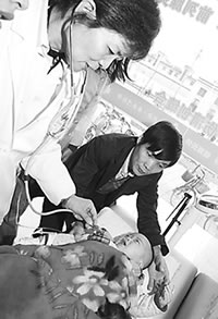 女婴的父母来自江西省赣州市于都县禾丰镇黄田村———35岁的丁俊华和妻子华清英。华清英流着眼泪说,孩子一天前不小心被开水烫伤了大腿根和屁股,当时就送到笕桥医院烫伤科,“医院一开始叫我交13000元金,我交不出,医院就不开药。一个老乡看到报纸,知道这里,才叫我们来的。”有护士提醒他们说,这里不看儿科。年轻的父母再次哭了:“我们不知道这里不能看儿科,那怎么办?”赵华琼的眼里也满是哀伤,“我能把他们推出去吗?”她问记者,也像是问自己。