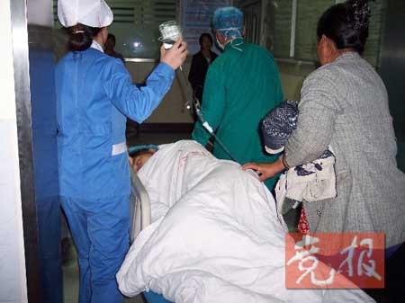 20多名情况严重学生被转送263医院 晚上11点30分,记者赶到通州263医院。医院急诊科值班大夫告诉记者:“已经送来了20多名二中的学生,情况比较严重。”在263医院消化内分泌科门口,一位高一学生的家长詹先生说:“我们家长都不让进去,已经送进去20多个了,都是比较严重的,里边都住满了。都是头昏,一动就吐。我在这都等了1个多小时了。