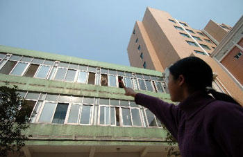 湖南省儿童医院一位工作人员在指示患者在感染科三楼重症隔离病房的病室位置(1月10日摄)。(新华社记者赵众志摄)