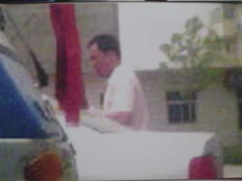 神秘的白色桑塔纳轿车和药商。(顺平县人民检察院秘拍。)本报记者 郭志昆