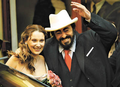 2003年12月13日,世界著名男高音帕瓦罗蒂和他原来的秘书33岁的曼托瓦尼正式结为夫妻。(图片来自:大洋网)