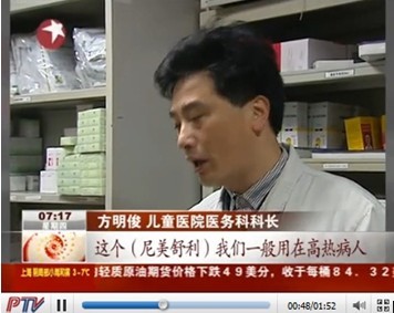 东方卫视消息:对于央视有关“国内外专家建议在儿童发热用药上慎用尼美舒利以及欧盟禁止尼美舒利在12岁以下儿童使用”的报道。上海儿童医院医务科科长方明俊说尼美舒利颗粒是临床常用儿童解热镇痛药,医院从未停止使用,上海药品不良反应监测中心技术总监杜文民表示 “世界各国对药品使用的规定不尽相同,我国药监部门从未发布过尼美舒利的相关警示通知”,“近年来上海从未收到过像国际上发生的严重的神经系统和肝损害病例”。