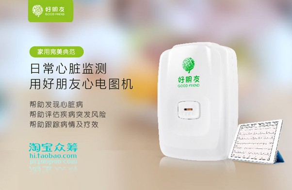 好朋友是深圳中瑞奇发起的众筹项目,主要针对心脏病人群、心脏病高危人群(高血压、糖尿病、高压力人群)的家用型心电图机。用户可利用好朋友在家庭环境做心电图检测,帮助其发现心脏问题,跟踪病情及疗效,评估疾病风险。