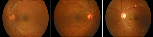 我们通过CR-2免散瞳数码眼底照相机来获得眼底的图像,清晰地了解到糖尿病视网膜病变的整个过程: