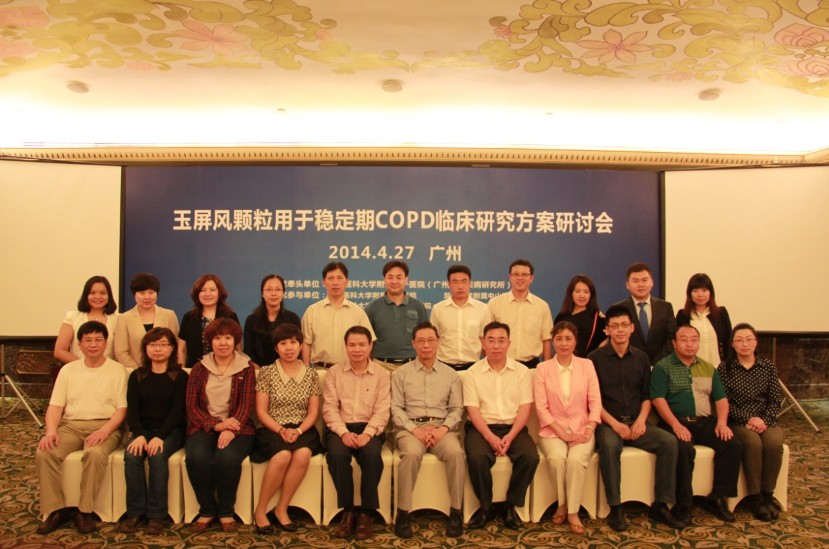 2014年4月27日下午,由研究者发起的“玉屏风颗粒用于稳定期COPD临床研究”方案研讨会在广州隆重召开。该临床研究的发起者及牵头人是广州医科大学附属第一医院(广州呼吸疾病研究所)钟南山院士及郑劲平副所长。参与本次临床试验的单位是广州医科大学附属第一医院、复旦大学附属中山医院、首都医科大学附属北京友谊医院等8家医院。项目支持单位为中国医药集团中国中药有限公司。