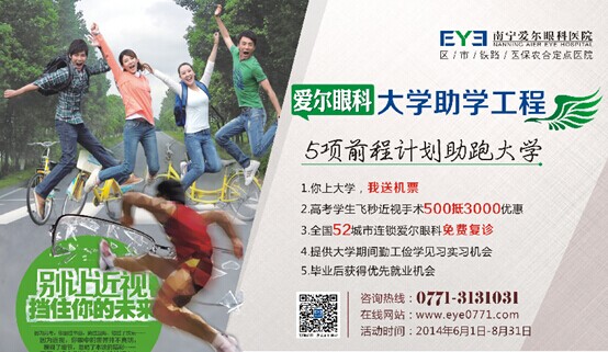 高考结束后家长、考生最关心的事情是什么?莫过于是能否顺利进入理想的大学!而大学诸多专业对视力有要求,如何解决视力问题顺利入读理想专业?你想摘掉眼镜以全新的形象迎接大学生活吗? 现在开始,摘掉眼镜让“EYE“自由吧!