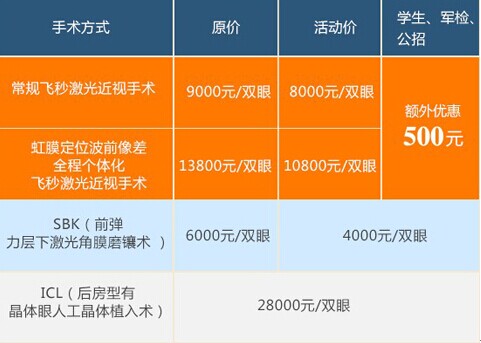 2. 学生、教师、公招、军检等人员选择飞秒全激光近视手术额外再优惠500元!