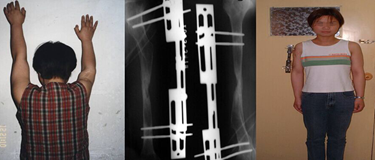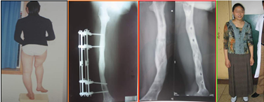病例4:先天侏儒畸形,双胫骨仅17CM,身高128CM,伴“O”形腿。术后情况:纠正O型腿并延长14cm。