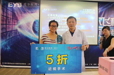 活动现场一名预约飞秒手术的近视朋友幸运地抽到了半价手术大奖