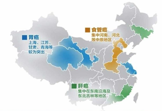 而在中国,各地的癌症发病肿瘤也各不相同。以上海为例,由于上海居住的大多是外来工作者,就业与创业的压力造成的饮食不规律成为罹患癌症的“杀手”。而在东北和云南的矿产业比较集中,严重污染的空气让大量致癌物质侵蚀人体肺部,诱发癌症。职业条件引发的病症不容忽视。就此,《中国癌症防治三年行动计划计划》提出了4项定量指标:肿瘤登记覆盖全国30%以上人口;癌症防治核心知识知晓率达到60%;成人吸烟率下降3%,以肺癌、肝癌、胃癌、食管癌、大肠癌、乳腺癌、宫颈癌、鼻咽癌为重点,扩大癌症筛查和早诊早治覆盖面;重点地区、重点癌症早诊率达到50%。