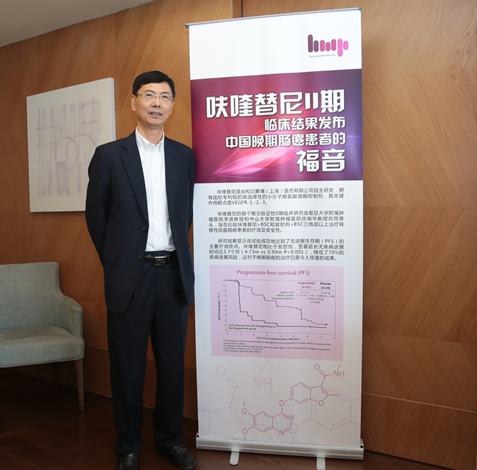 李进教授和徐瑞华教授的研究团队今日在第十八届全国临床肿瘤学大会暨2015年CSCO学术年会上,公布了和记黄埔医药研发的小分子络氨酸激酶抑制剂呋喹替尼治疗转移性结直肠癌的首个概念验证性(Proof of Concept, POC)临床研究的主要结果。结果显示:该试验成功地达到了无进展生存期(Progression Free Survival, PFS)的主要疗效终点,次要疗效终点(包括客观缓解率,疾病控制率以及总生存期)相关结果也已初步获得。同时,此次概念验证性临床研究进一步证实了呋喹替尼治疗晚期结直肠癌的安全性和耐受性与同类药物相似。该项试验显著的疗效结果有力地支持了呋喹替尼开展进一步III期注册临床研究。