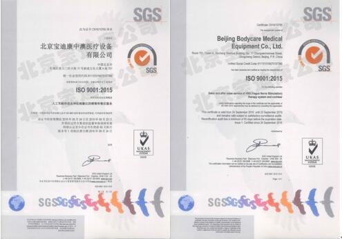 2016年9月,北京宝迪康中澳医疗设备有限公司(以下简称:北京宝迪康)获得SGS颁发的质量管理体系认证证书,正式通过ISO9001:2015国际质量管理体系认证,这在全国同行业中尚属首家。