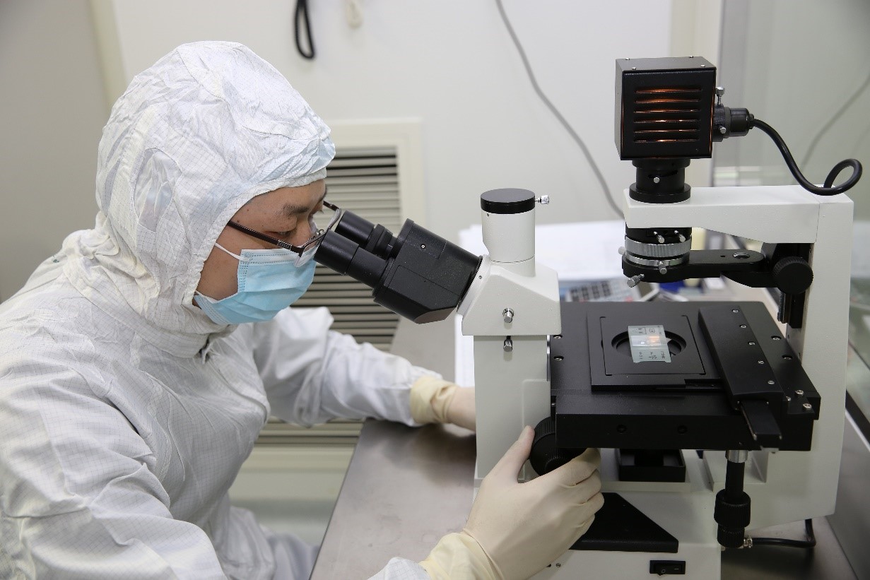中赢生命方舟细胞银行细胞制备人员在倒置显微镜下观察细胞的活性状态