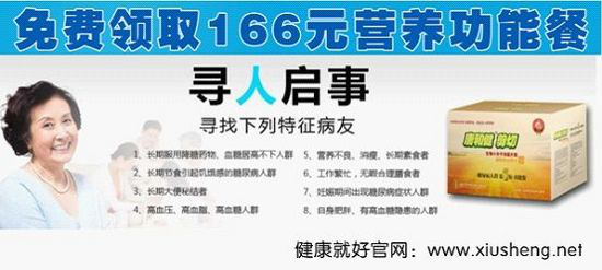 根据国人的饮食习惯,也为了更好的协调糖尿病的治疗与饮食问题,健康就好(唯一官方网站:www.xiusheng.net)健康管理 机构首席专家刘尊永教授特地推荐了唐和健功能早餐,因为唐和健以低脂、低糖、低热量、药食同源的植物组成,广泛适用于各种类型的糖尿病人群。它和药物相互 配合,减轻了长期用药物给人们带来的毒副作用,迅速排出体内糖毒、脂毒和药毒带来的危害,解决饮食难择、这也不能吃、那也不能吃给人们带来的饥饿感和营养 不足,以及引起的四肢困乏无力、精神萎靡和消瘦。如果对于这套产品或者糖尿病的治疗与饮食有不明白的地方,欢迎访问健康就好唯一官方网 站:www.xiusheng.net或者电话垂询4007-701071