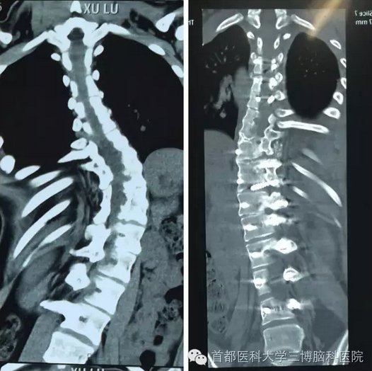8年来,随着璐璐的生长发育,她的脊柱侧弯情况也越来越严重,脊背畸形向左侧严重凸出,还经常腰疼,小便次数多量少,双脚痛觉减弱。为了给孩子治病,璐璐父母四处打听,后来从朋友那里得知三博脑科医院范涛教授是治疗这种病的专家,父母慕名找到了三博脑科医院脊髓脊柱诊疗中心。