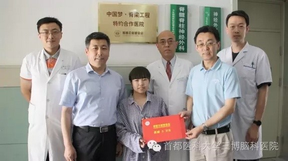 近日,首都医科大学三博脑科医院与智善公益基金会成功合作,三博脊髓脊柱诊疗中心作为“中国梦·脊梁工程 特约合作医院”顺利挂牌。这给复杂脊髓脊柱疾病患者带来了福音,以后基金会将专门为在三博手术的复杂脊髓脊柱疾病患者提供资金支持,只要符合条件的患者都可以申请基金会的帮助。目前,智善基金在三博挂牌后已经资助了两位患者,一位是复发椎管肿瘤合并脊柱后突畸形,在三博做了肿瘤切除和脊柱畸形矫正手术,还有一位是年仅16岁、患有严重脊柱侧弯的的璐璐。
