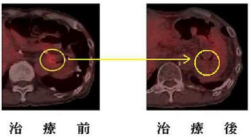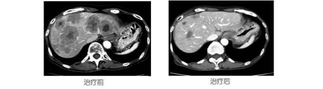2012年10月,71岁,女性,食道癌肝转移,化疗后觉得四肢无力。通过日本多学科专家会诊后,建议她做基因治疗。接受了“超级NK细胞”与“特殊树状细胞”相结合的基因治疗后,使肝脏肿瘤奇迹般地变小了。
