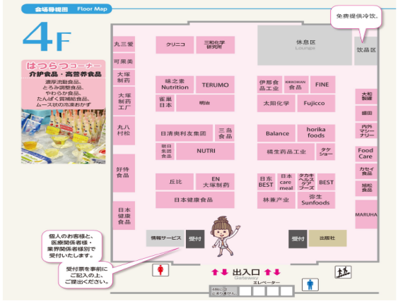 日本医疗、介护食品展是日本最大的健康食品博览会,目前已成为医院、生产企业和消费者之间进行特医食品交流的多方平台。为了保证展会能安全有序的进行,主办方根据特医食品的不同用途以及针对的人群,将产品划分了不同的展区,参会人员可以根据不同需求针对性参观。