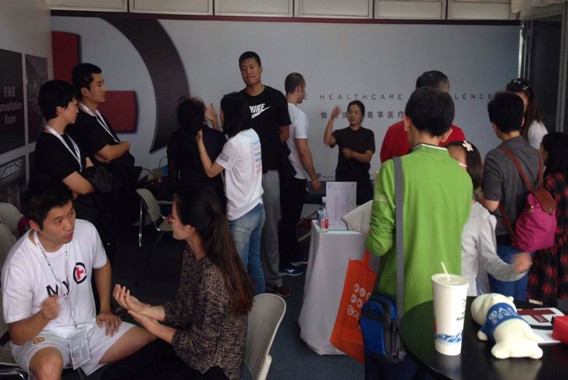 2015签约新闻发布会上,北京明德医院运动理疗医师现场讲解演示