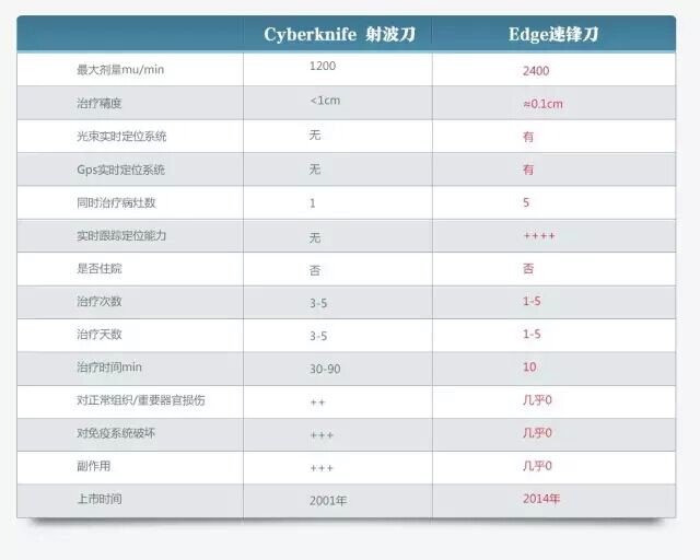 1.治疗强度更高:EDGE放射治疗强度是伽马刀和射波刀的6倍以上,消除肿瘤细胞更加彻底。