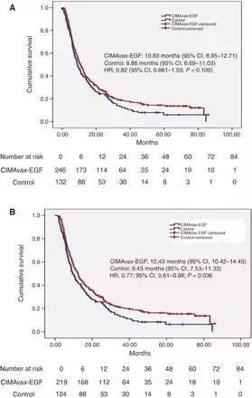 评价总体生存率,安全性,免疫原性,和注射非小细胞肺癌疫苗后血清中EGF的浓度,这项随机的晚期非小细胞肺癌三期临床试验已经完成。在一线化疗后4~6周,405名IIIB/IV的非小细胞肺癌患者被随机分配到疫苗组(使用CIMAvax-EGF)和对照组(使用最佳支持治疗)。
