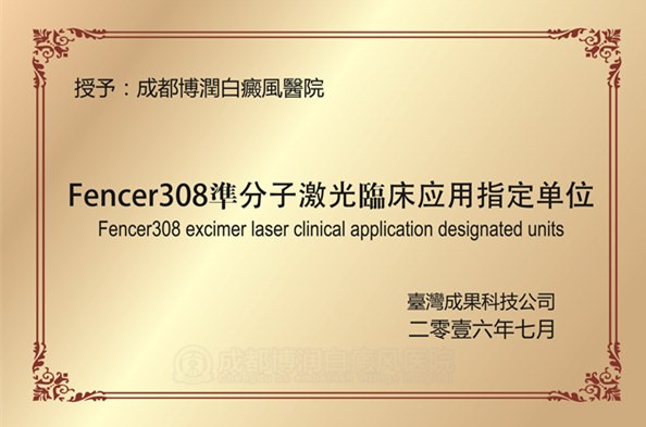 据悉,成都博润引进的“Fencer(剑客)智能308准分子激光治疗仪”,由中美台澳四国联合认证。结合当前先进影像识别技术与自动化微光斑扫描系统。智能定位病患区域,自主分配剂量,快速精确扫描,全程智能控制治疗过程,以高效率、零误差完成治疗,实现了白癜风治疗革命性突破。一经问世便受到了多方关注,受到世界众多白癜风专家的高度肯定,认为是“引领白癜风治疗走进全新的智能化时代”。