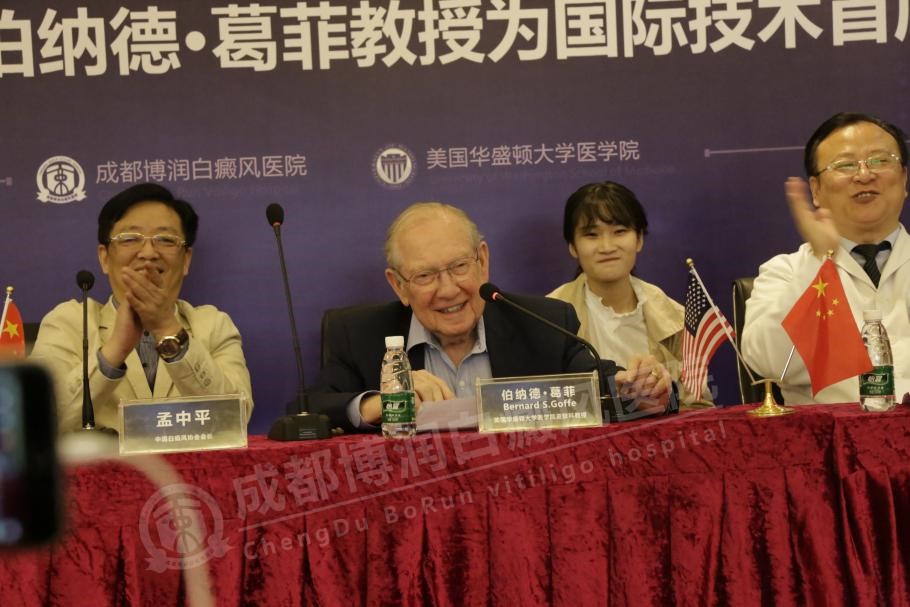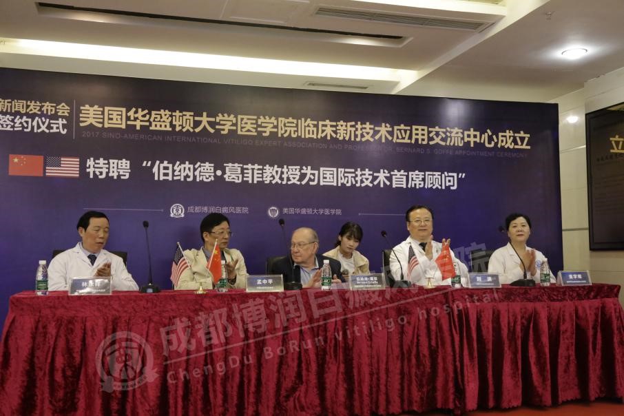 此次活动,由美国华盛顿大学教授伯纳德·葛菲、中国白癜风协会会长孟中平、成都博润林永祥主任等多名专家为患者三对一会诊,破解白斑难题;还是“2017|美国华盛顿大学临床新技术应用中心成立新闻发布会暨特聘‘伯纳德·葛菲教授为国际技术首席顾问”的签约仪式,为中美国际合作共抗白癜风,迈进全新的阶段。