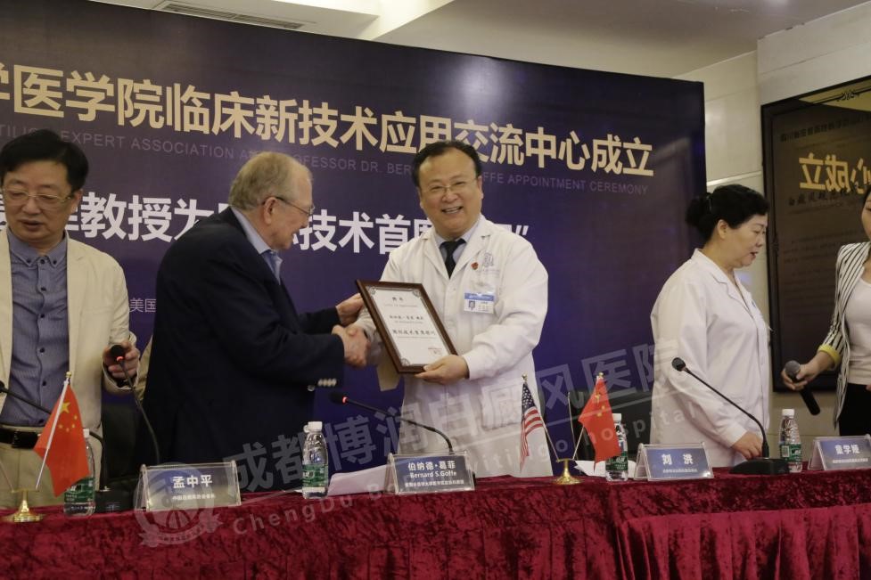 会诊当日,在成都博润白癜风医院,伯纳德·葛菲教授正式受聘成为博润国际技术首席顾问,并代表美国华盛顿大学与成都博润合作成立“美国华盛顿大学临床新技术应用中心”。与该院正式合作学术交流、病例研讨、远程会诊等,推广中西结合、规范化诊疗白癜风,推进中美白癜风医疗深入发展。