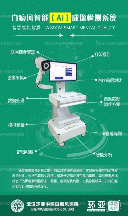 为了提高白癜风诊疗质量,提升医疗品质,武汉环亚走出第一步!引进华中首台智能AI成像检测系统。