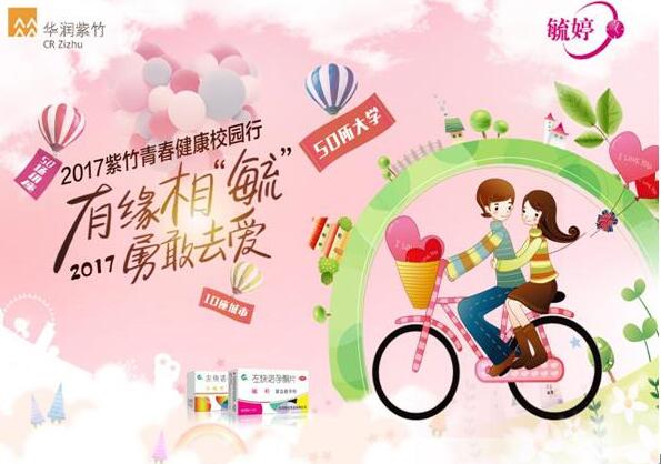 2017“紫竹青春健康校园行”以有缘相毓,勇敢去爱为主题进行校园宣讲活动。于5月3日在沈阳大学温暖启动,在为期43天的活动期间里,共走进了沈阳、哈尔滨、贵阳、济南4个省份的20所高校,影响辐射28万高校大学生。此次活动累计发放礼品20000余份,近12000人参与了外场活动,超过5000人参与了内场的青春期生殖健康知识讲座。本活动旨在帮助大学生们正确了解青春期健康知识,增强自我保护意识,树立正确、健康的生理健康观念,华润紫竹的品牌形象受到高校师生的广泛赞誉。