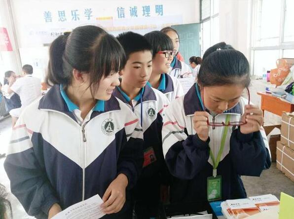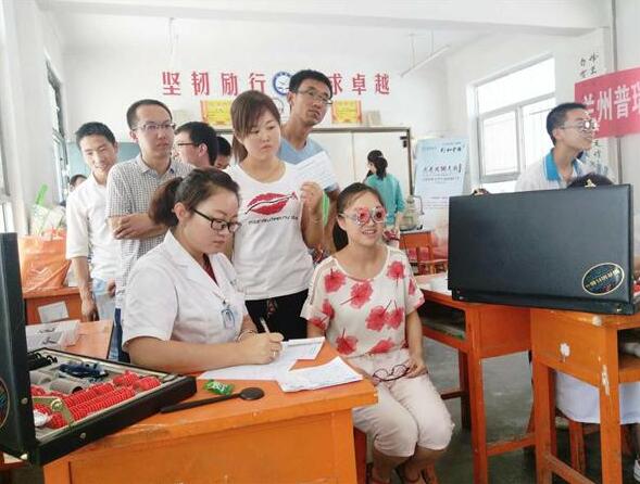 从早晨7:30开始,医疗团队有条不紊地为学生们进行插片、试戴镜片、测量眼压、散瞳、测量瞳距、挑选镜架等工作。这将是工作量最大,最繁重的一天。但是看到孩子们脸上淳朴的笑容,看到他们试戴镜架时的欣喜的眼神,筛查团队人员心中倍感欣慰。