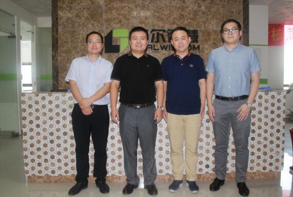 格尔智慧CEO李群(左2)与天坦CEO董杰(左3)一行高管合影