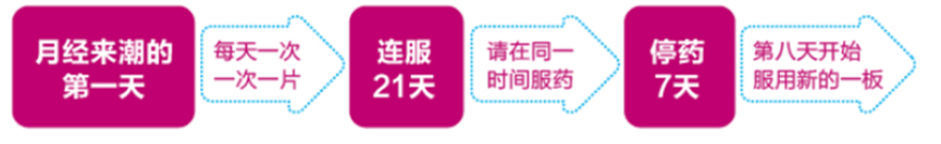 短效避孕药优思明的药品规格是21片装,服用方法为“21+7”,即从月经来潮的第一天起,每日服用1片,连续服用21天,停药7天,之后开始服用下一盒。注意,优思明应在每天的同一时间服用。