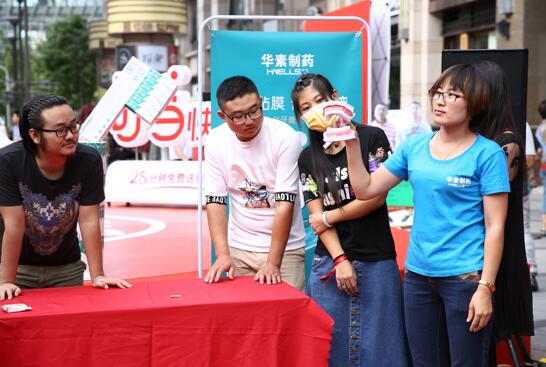 ▲华素药业提供了牙齿模型,为观众演示正确和错误的刷牙方式