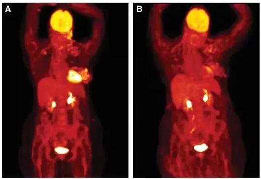 基于以上检测结果,患者开始用拉帕替尼(Tykerb,GlaxoSmithKline,Philadelphia,PA)和卡培他滨(Xeloda,Genentech)进行治疗,检查结果显示初步症状和临床改善。然而,吞咽困难使她无法继续接受这种口服药物组合的方式。所以停止卡培他滨,将白蛋白结合紫杉醇和曲妥珠单抗(赫赛汀,Genentech)加入到用拉帕替尼维持的治疗中。 4周后,患者吞咽困难症状明显改善,但其神经病变恶化,将白蛋白结合紫杉醇更换为长春瑞滨。 患者耐受三种药物方案,并在中表现出反应,这通过CT扫描证实,患者的症状得到了明显的改善。